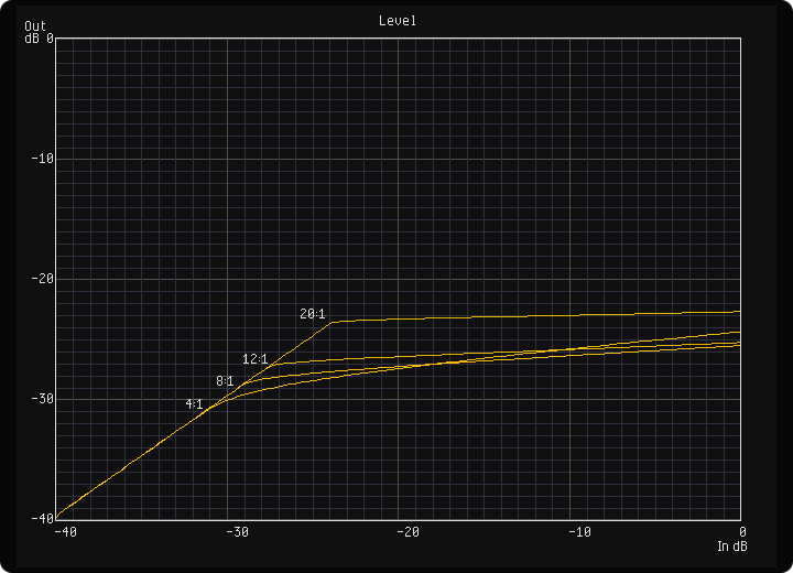 • | Fast attack and program dependent release. | Fast attack tames even the most troublesome transients, while the side-chain adjusts to the prevailing program dynamics. |