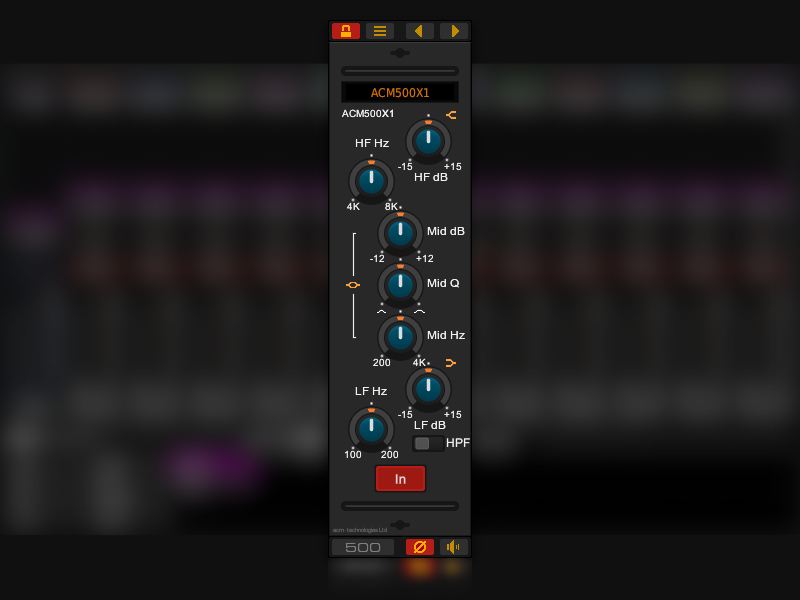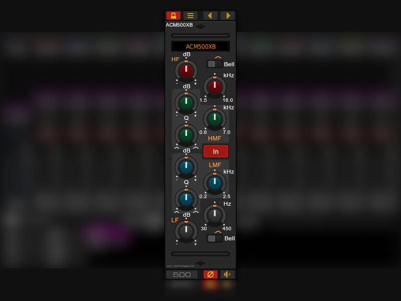 Analogue modelled channel EQ, with more aggressive mid-range gain / Q characteristics when compared to the ACM500XA.